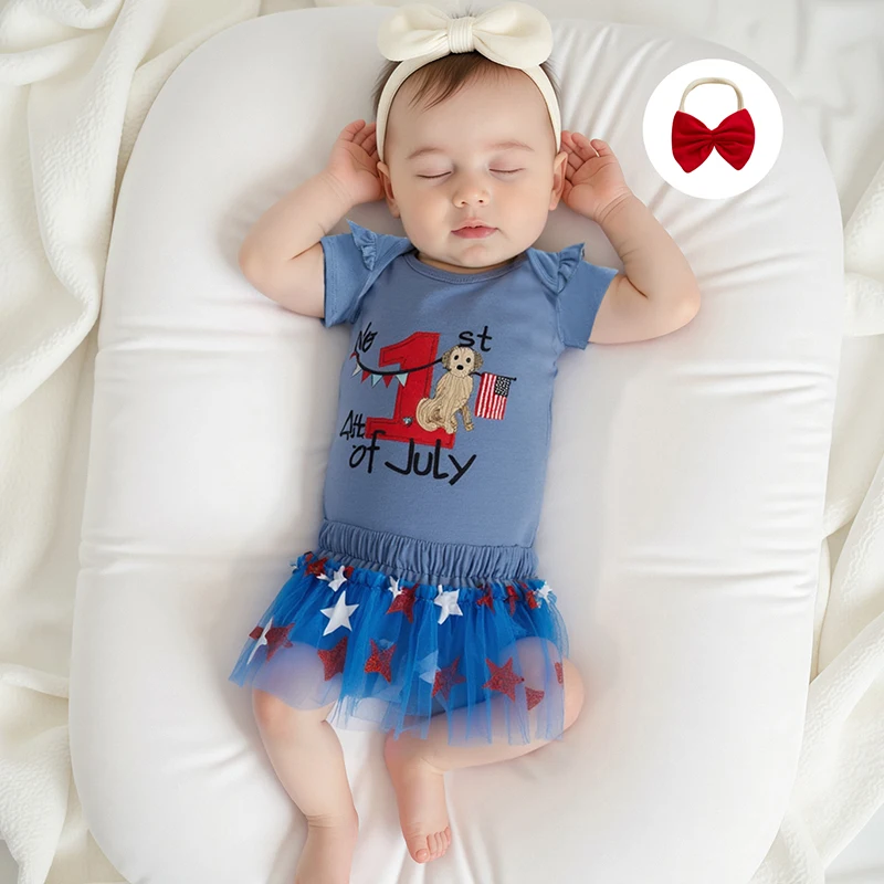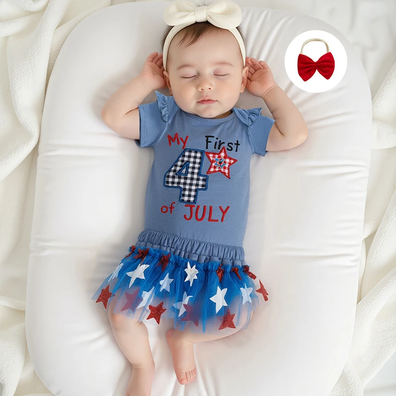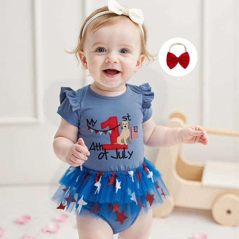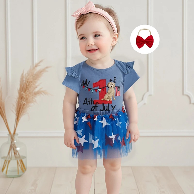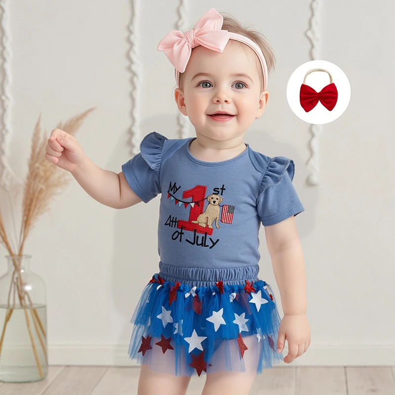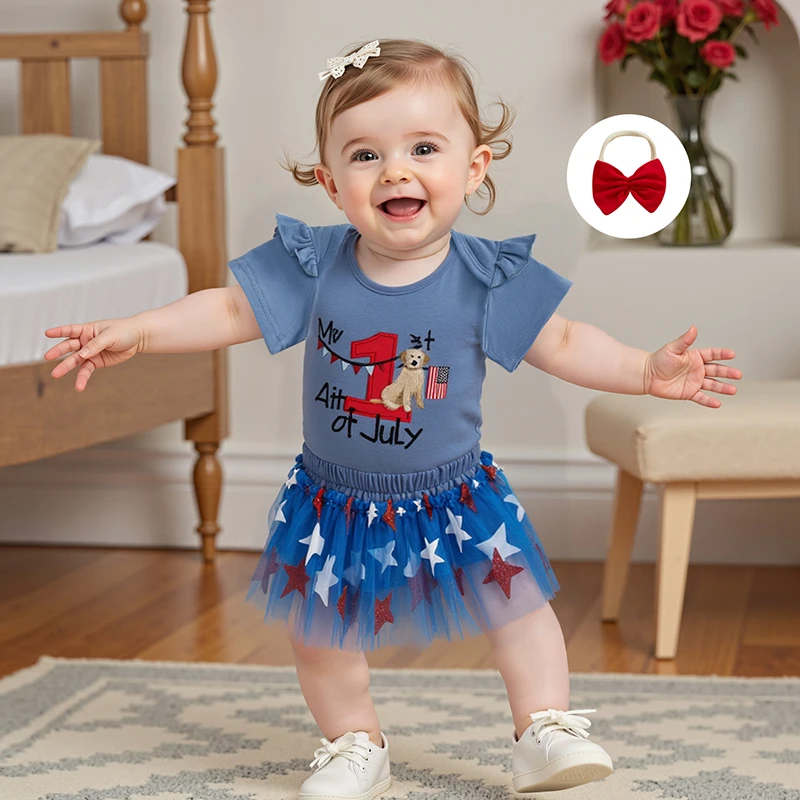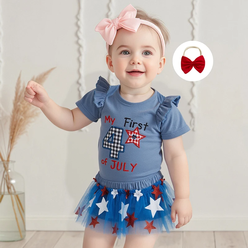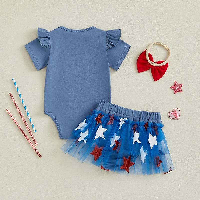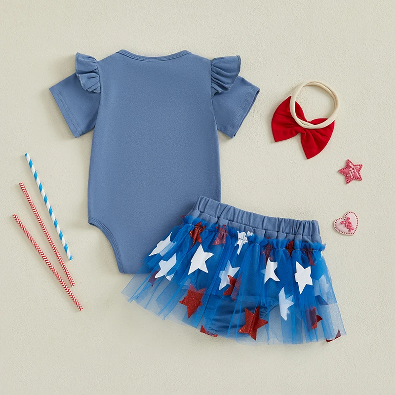 Baby Girls Shorts Set, Short Sleeve Embroidery Letters Romper with Stars Shorts and Hairband Summer Outfit for Independence DayWhether your baby girl is playing at the park or attending a birthday party, our shorts set is versatile enough to suit any occasion.